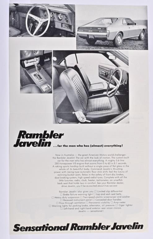 Lot 38 of 573: RAMBLER: A 1968 Australian Motor Industries Rambler Javelin sales brochure