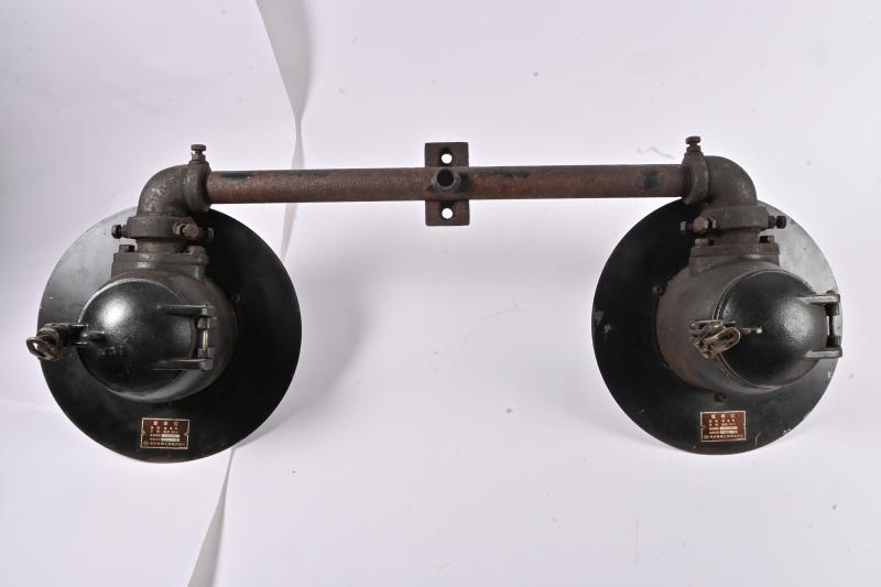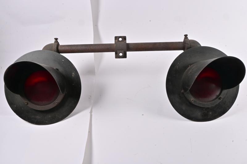 Lot 9 of 380: RAILWAY: A pair of red sealed beam railway crossing lamps with mounting bracket