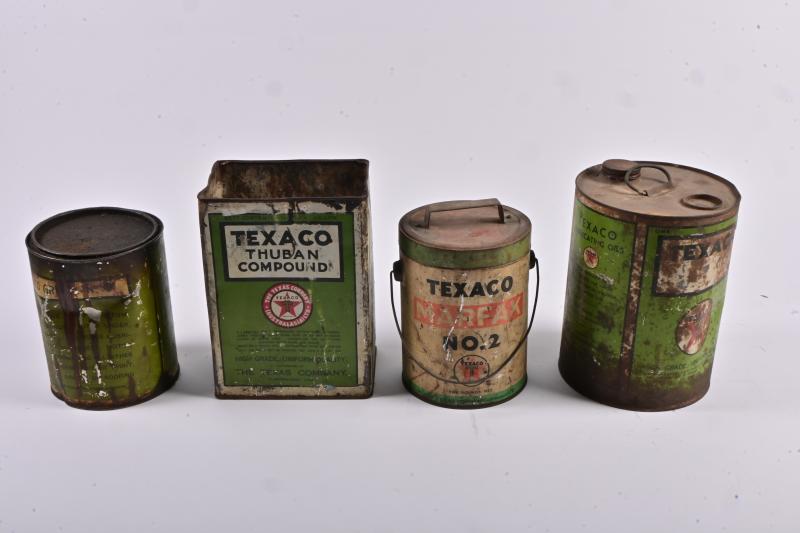 Lot 24 of 380: TEXACO: Four Texaco oil tins, various shapes and sizes