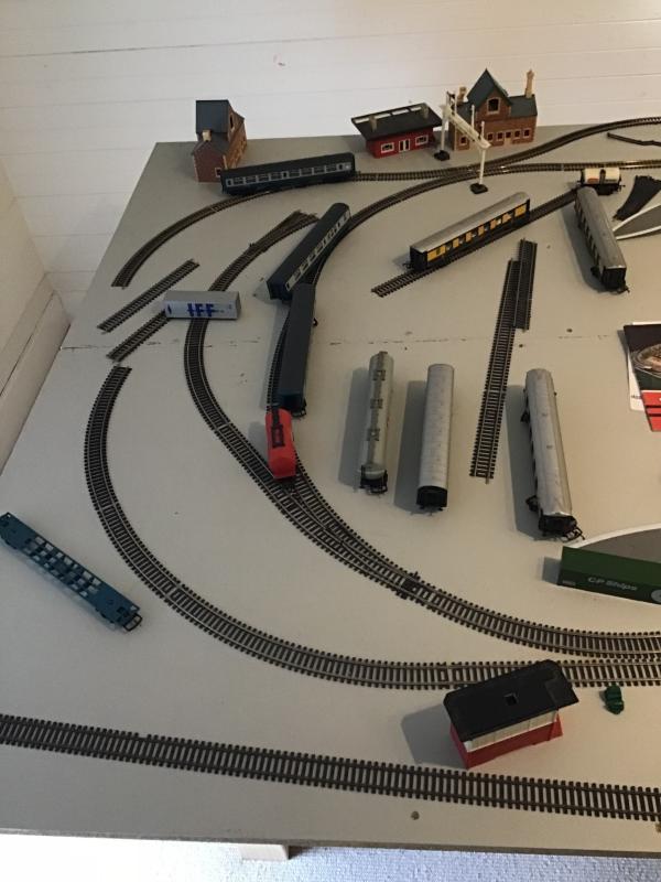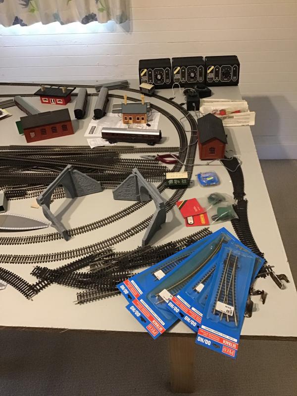 Lot 308 of 380: TRAIN SET: A Hornby assorted trains set with track side buildings, as pictured