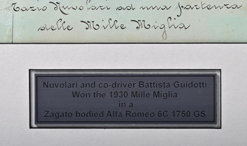 Lot 2 of 566: ALFA ROMEO: A rare period black and white photograph of Nuvolari and co-driver Battista Guidotti after winning the 1930 Mille Miglia in a Zagato bodied Alfa Romeo 6C 1750 GS