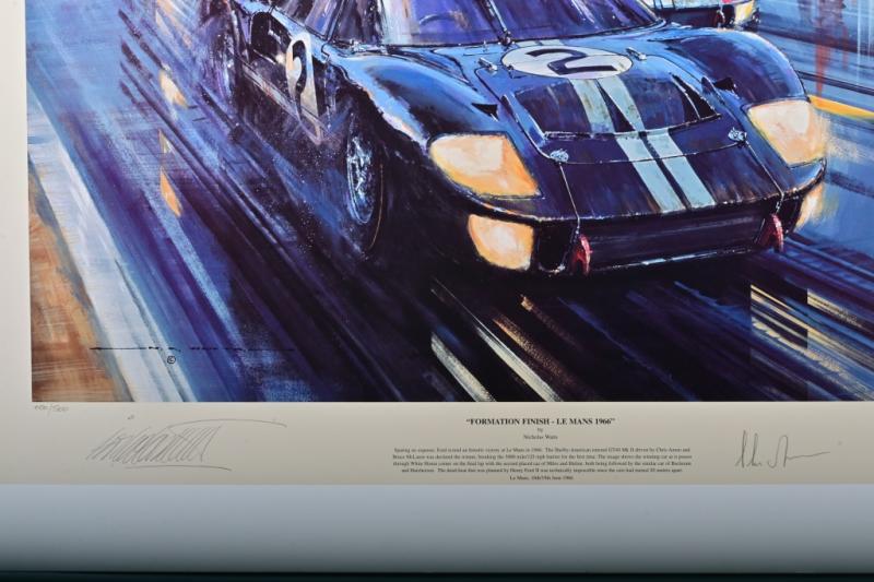 Lot 54 of 566: FORD: A Limited Edition print by Nicholas Watts titled "FORMATION FINISH - LE MANS 1966" featuring the victorious Ford GT40 Mk II of Chris Amon and Bruce McLaren. Signed by Chris Amon and artist. Numbered 400/500