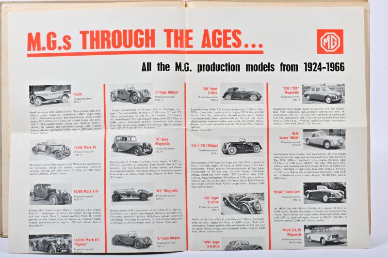 Lot 98 of 566: M.G: Two M.G related publications. 'MAINTAINING THE BREED - The saga of MG Racing Cars' hardcover book by John W. Thornley & BMC 'M.G.s THROUGH THE AGES...' poster displaying all M.G production models from 1924-1966