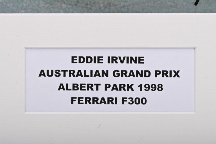 Lot 9 of 484: IRVINE: A colour picture of a Ferrari F300 as raced by Eddie Irvine at the AUSTRALIAN GRAND PRIX ALBERT PARK 1998. Picture signed by Eddie Irvine