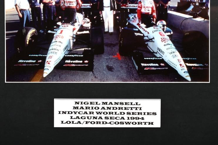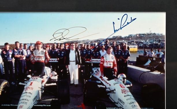 Lot 16 of 484: MANSELL/ANDRETTI: A colour picture of Nigel Mansell and Mario Andretti at the Indycar World Series, Laguna Seca 1994. Nigel Mansell & Mario Andretti signatures