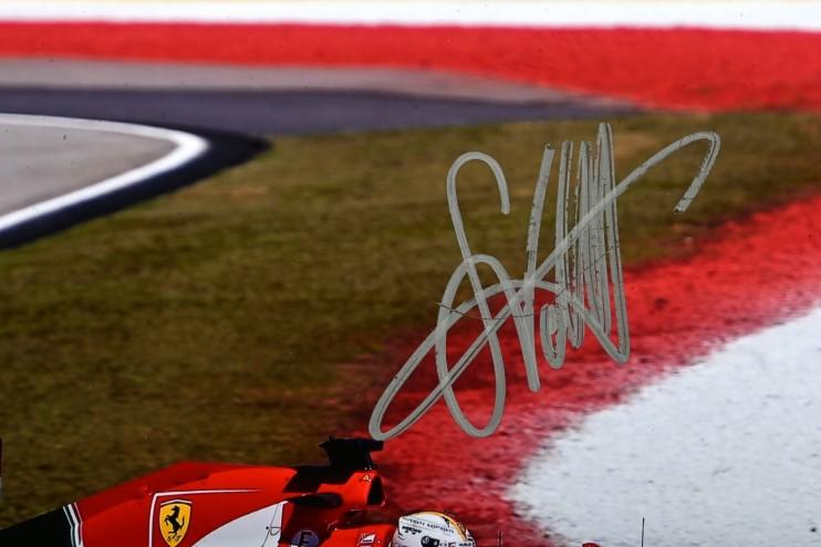 Lot 23 of 484: VETTEL: A colour picture of Sebastian Vettel racing a Ferrari SF15-T during the 2015 Formula 1 season. Picture signed by Sebastian Vettel
