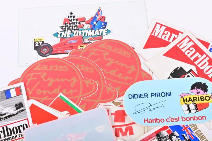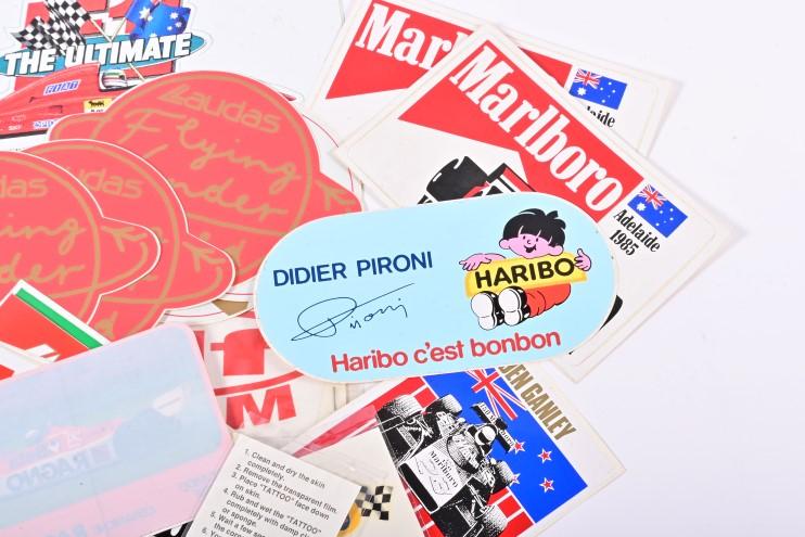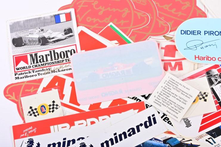Lot 31 of 484: FORMULA 1 STICKERS: A large quantity of period Formula 1 stickers including 'AVIA Fittipaldi', 'HARIBO - DIDIER PIRONI','RACING ELF TEAM'