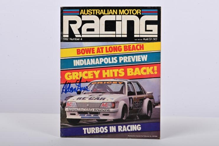 Lot 433 of 484: GRICE: A May 1982, Issue 4, of 'AUSTRALIAN MOTOR RACING' magazine. Front cover signed by Allan Grice