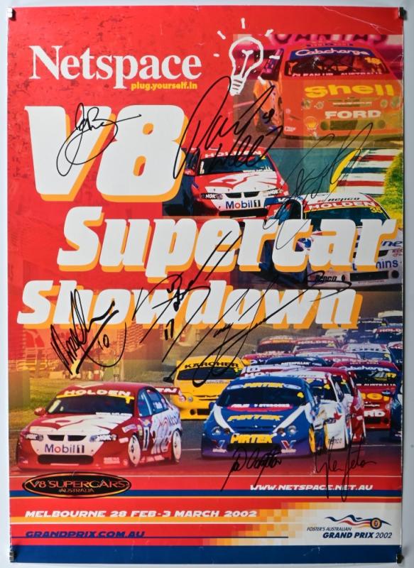 Lot 436 of 484: HOLDEN: A FOSTER'S AUSTRALIAN GRAND PRIX 2002 V8 SUPERCARS -'V8 Supercar Showdown' - promotional poster. Poster with multiple signatures including Neil Crompton, Mark Larkham, Glenn Seton, Paul Weel