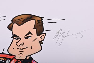 Lot 438 of 484: NISSAN: A colour caricature by Roger Warrick of the Doran Racing Nissan Nismo 370 Z RC as raced by Brad Jaeger and B.J.Zacharias. Picture signed by both drivers