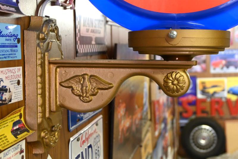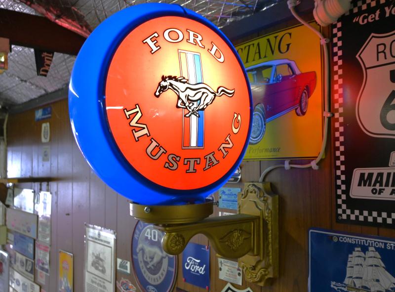 Lot 10 of 371: MUSTANG: A reproduction gilt wall sconce with Ford Mustang double sided illuminated globe, 60cm high overall with bracket.