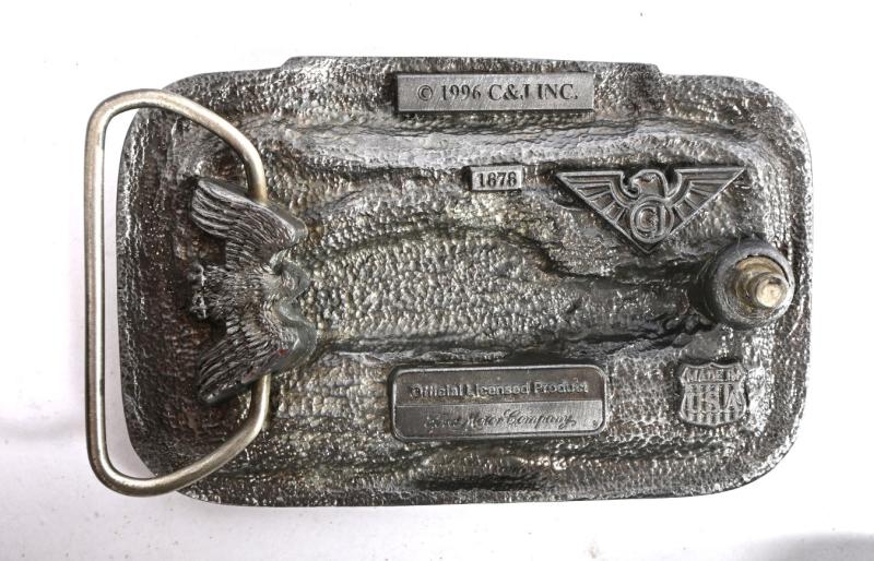 Lot 303 of 371: MUSTANG BELT BUCKLES: Four 'MUSTANG' belt buckles by various buckle manufacturers, some with number stamps to reverse