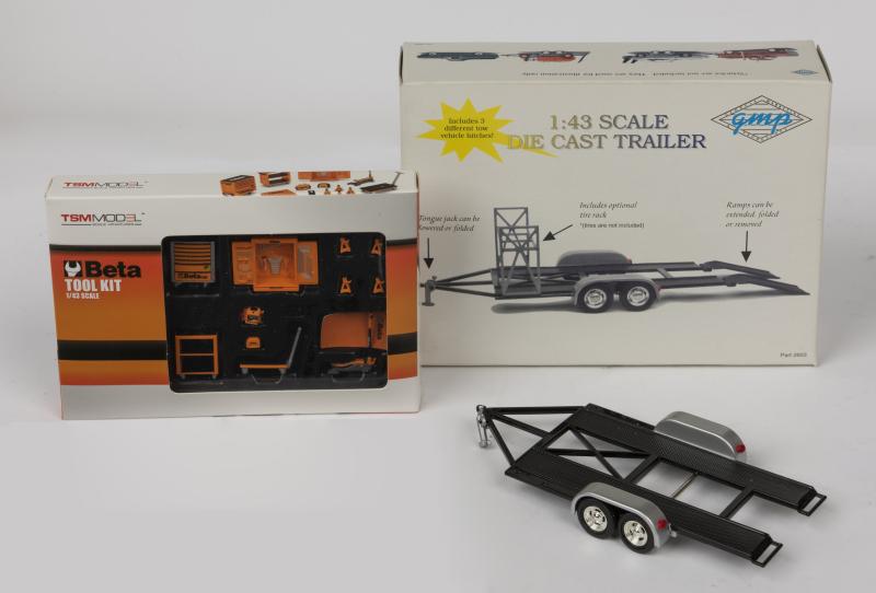 Lot 463 of 499: CAR TRAILER & TOOLS: NOS 1:43 scale GMP Car Trailer & TSM Model "Beta - Tool Kit" die-cast models Qty 3