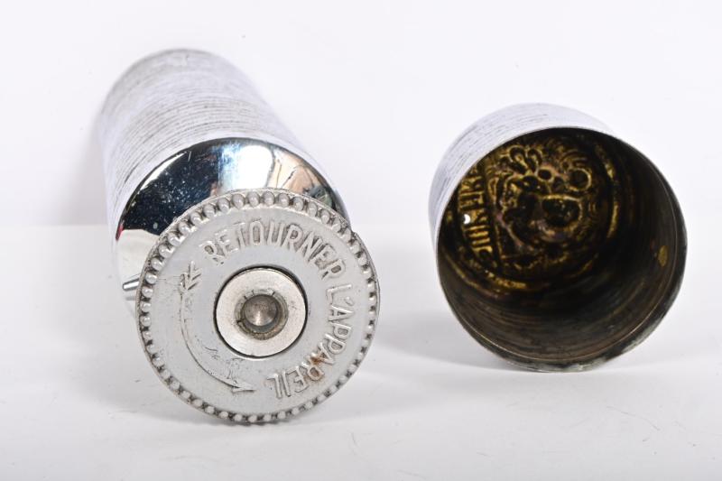 Lot 4 of 491: FIRE EXTINGUSHER: A French circa 1940/50s 'Stop Fire' chrome plated brass fire extinguisher, 20cm high, 5cm diameter