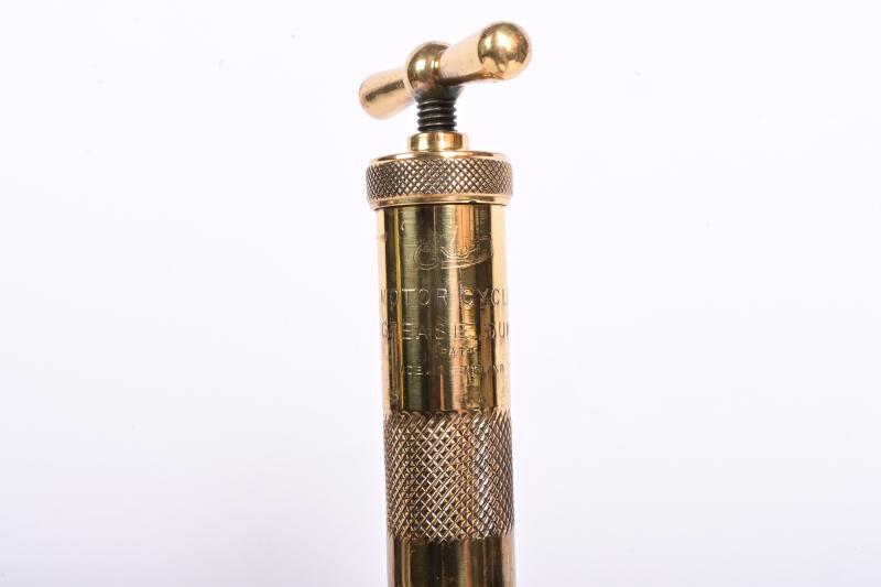 Lot 24 of 491: ENOTS: A circa 1920s Enots motorcycle brass grease gun, 22.5cm long