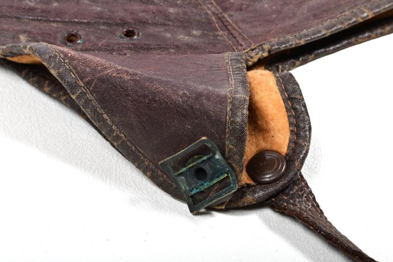 Lot 367 of 491: LEATHER CAP: A circa 1930s/1940s small lined leather driving/flying cap, lab reading "M'rr'd Under Cap Code F190143"
