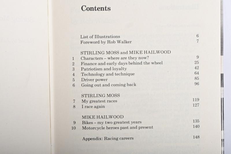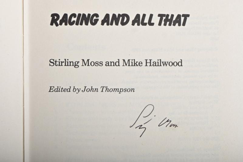 Lot 223 of 502: MOSS: 'Stirling Moss & Mike Hailwood RACING AND ALL THAT' hardcover book. Title page signed by Stirling Moss