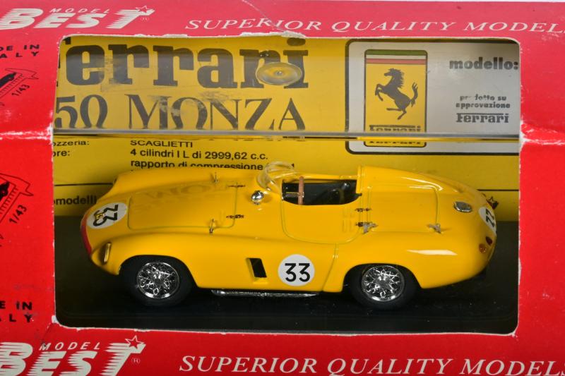 Lot 10 of 127: MONZA: Two 1:43 scale MODEL BEST Ferrari Monza models. Ferrari 750 MONZA, "SPA 55" (9049) & Ferrari 860 MONZA, "PROVA 56" (9051)