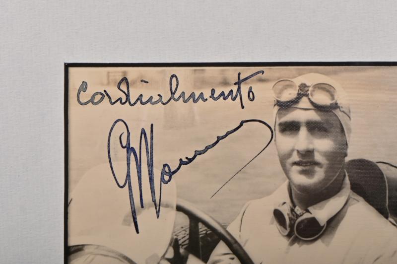 Lot 17 of 127: FARINA: A black and white two picture set featuring GIUSEPPE 'NINO' FARINA from the German Grand Prix Nurburgring 1953. Giuseppe Farina signed picture of Farina in a Ferrari 500/F2. Markus Brandes CoA (UPDATED)
