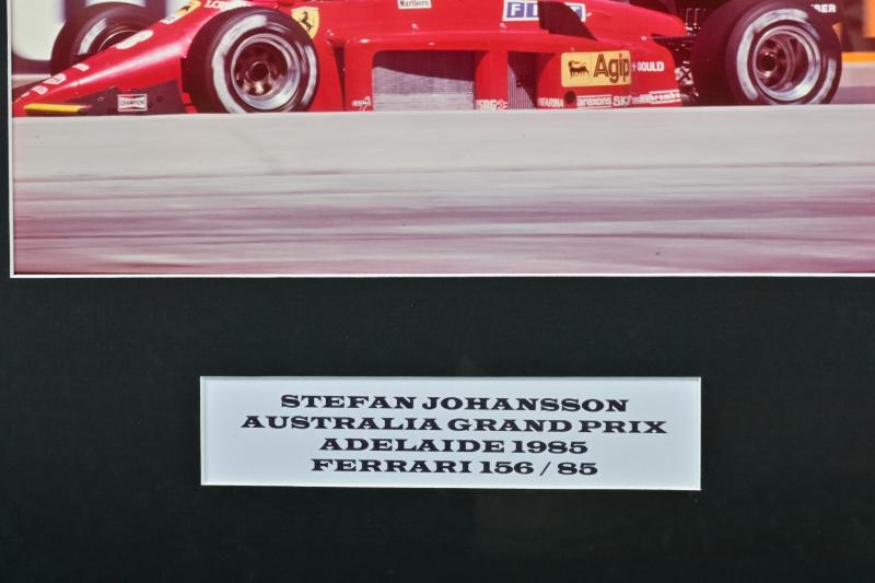 Lot 19 of 127: JOHANSSON: A colour picture of Stefan Johansson racing a Ferrari 156/85 from the Australian Grand Prix, Adelaide 1985. Stefan Johansson signature