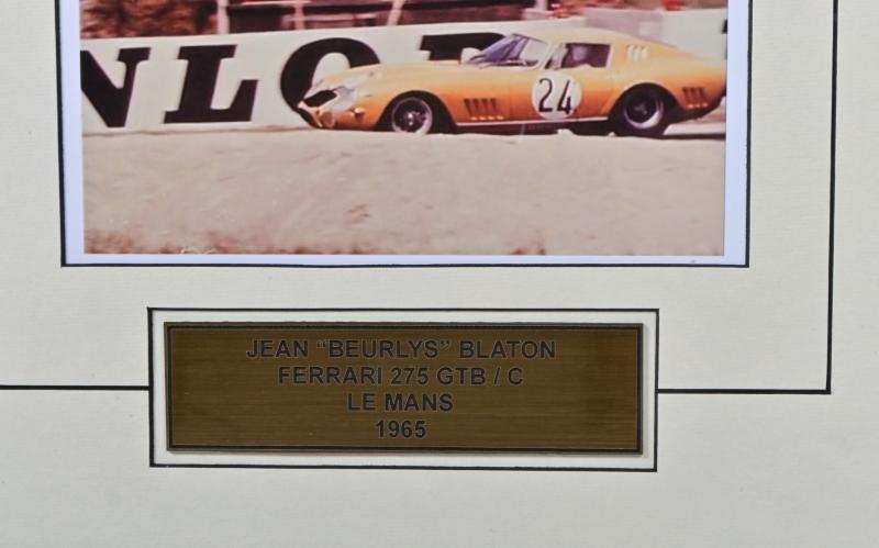 Lot 104 of 127: BLATON: A colour picture of 'JEAN "BEURLYS" BLATON racing a Ferrari 275 GTB/C at Le Mans 1965. Jean Blaton signature