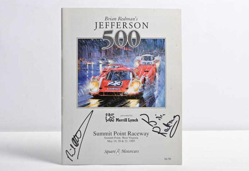 Lot 507 of 501: REDMAN/ATTWOOD: A 1995 'Brian Redman's JEFFERSON 500', Summit Point Raceway event guide. Front cover signed by Brian Redman & Richard Attwood