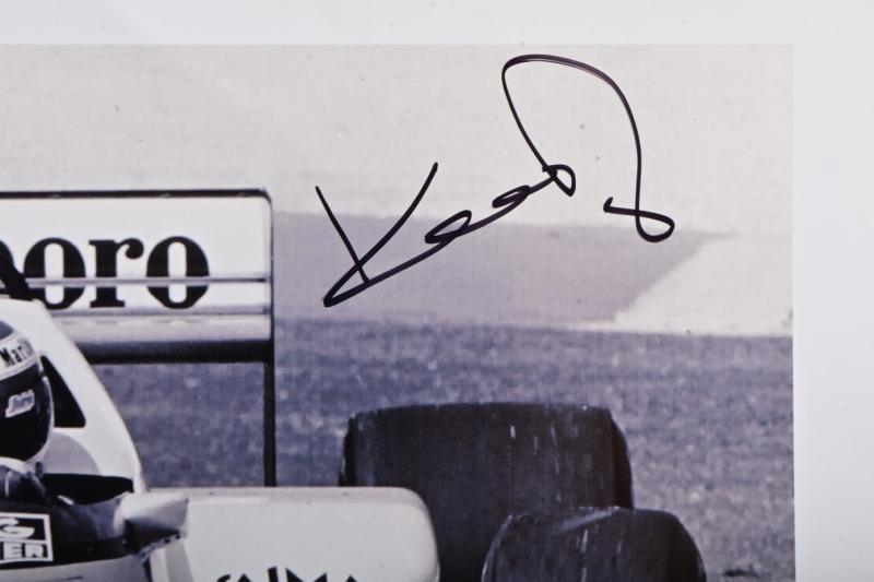 Lot 551 of 501: K.ROSBERG: A superb black and white picture of Keke Rosberg racing the McLaren MP4/2C during the 1986 Formula 1 season. Keke Rosberg signature