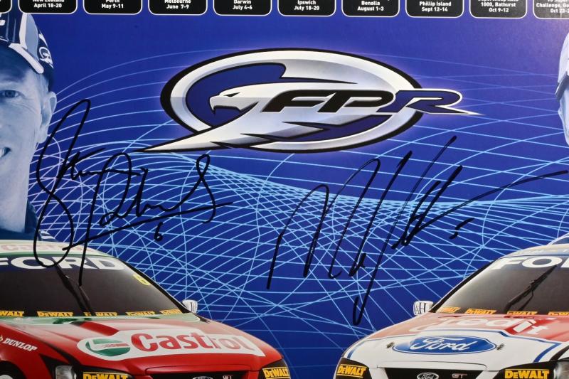 Lot 720 of 501: FORD: A FPR Ford promotional poster depicting the Ford V8 Supercars of Steven Richards and Mark Winterbottom. Poster signed by both drivers
