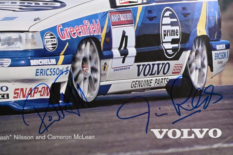 Lot 757 of 501: VOLVO: A VOLVO racing poster depicting the Volvo 850 R of Car #4 Jim Richards and Rickard Rydell. Poster signed by Rickard Rydell & Jim Richards