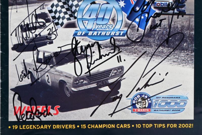 Lot 904 of 501: BATHURST: A 'BOB JANE MT PANORAMA 1000 BATHURST 2002' Special 40th Anniversary Feature as prepared by 'WHEELS'. Front cover signed by various A.T.C.C and V8 Supercars identities including Colin Bond, Larry Perkins, Mark Skaife & others