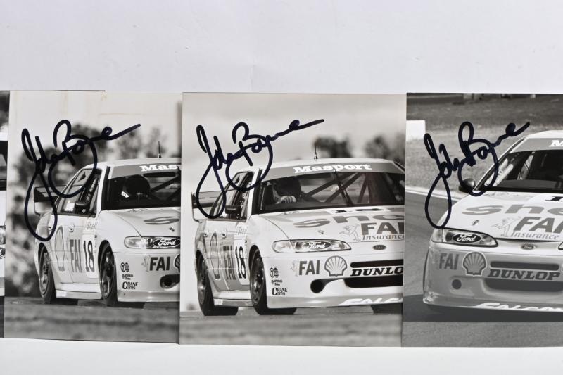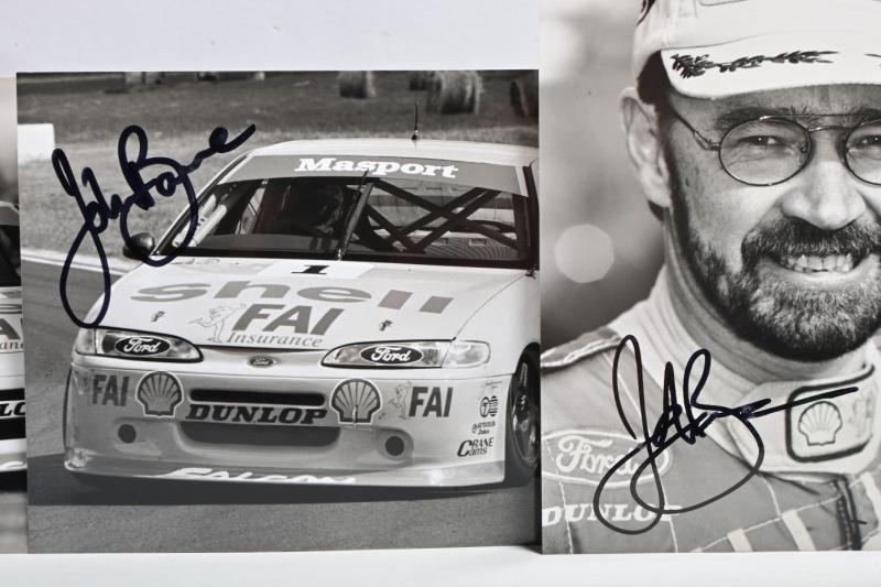Lot 927 of 501: BOWE: A collection of six black and white pictures relating to John Bowe. BA and EF Shell Ford Falcon pictures. John Bowe signatures