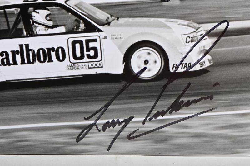 Lot 946 of 501: BROCK/PERKINS: A black and white Ian Smith picture of the 1984 HDT VK Holden Commodore as raced by Peter Brock and Larry Perkins. Brock & Perkins signatures