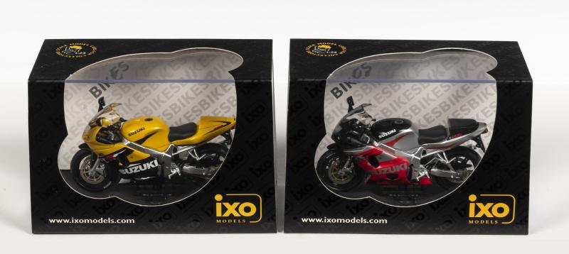 Lot 790 of 503: SUZUKI: 2 NOS 1:24 scale IXO Models Suzuki GSX-R Road Bikes 2000 Yellow 600 & Red 750 die-cast models