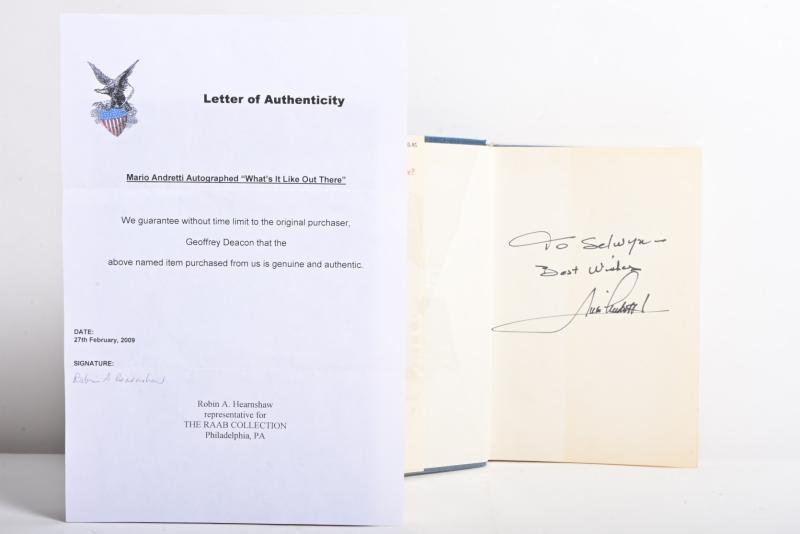 Lot 731 of 576: INDY CARS: Two period hardcover autobiographies dealing with Indy Car drivers. 'They Call Me Mister 500' authored and signed by Anthony (Andy) Granatelli & 'What's It Like Out There' authored and signed by Mario Andretti