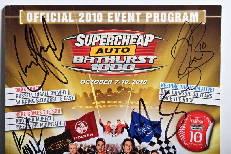 Lot 754 of 576: V8 SUPERCARS: An October 2010 'SUPERCHEAP AUTO BATHURST 1000' Official Program. Front cover signed by Garth Tander, Will Davison, Ryan Briscoe, Fabian Coulthard, Craig Baird