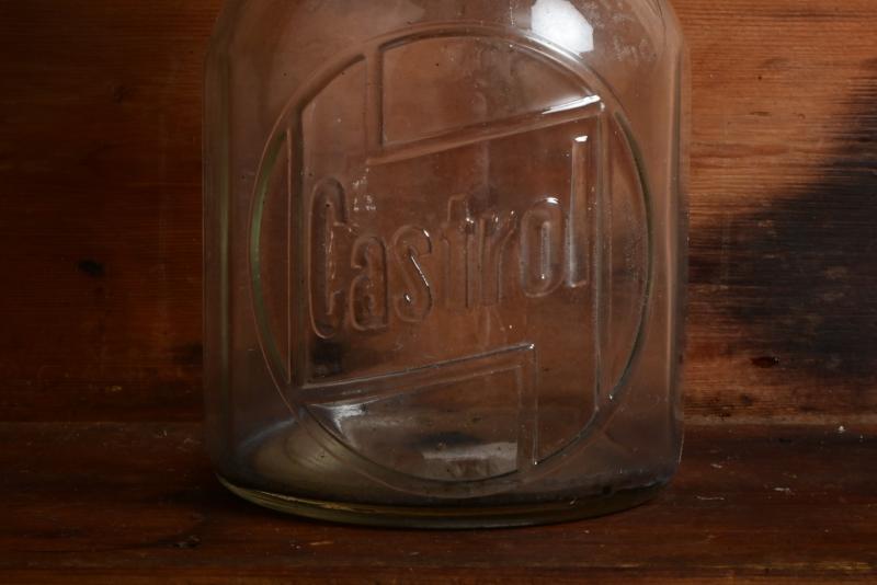 Lot 57 of 501: CASTROL: A 1950/60s "Castrol" embossed one imperial pint oil bottle, with late 20th century "Castrol CW 30-40 MS" tin pourer and dust cover