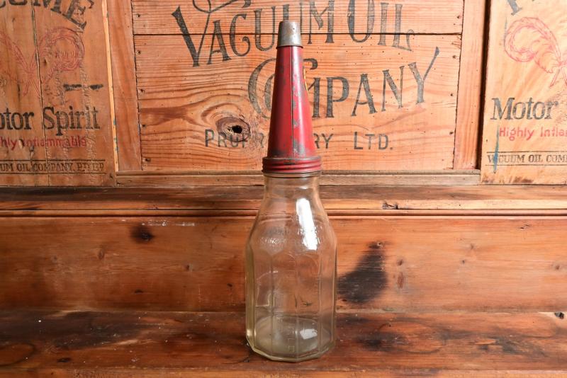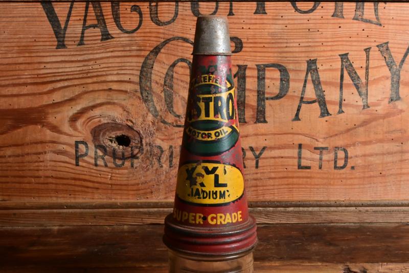 Lot 137 of 501: CASTROL: A 1940/50s "Castrol" embossed one imperial quart oil bottle, with circa 1900/1910 "Castrol XL Super Grade" tin pourer and dust cover