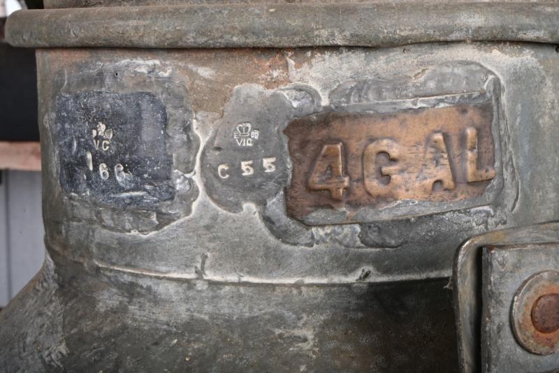Lot 501 of 386: H.C SLEIGH: A rare early four gallon drum with brass plaque reading "H. C Sleigh, SAE 50", embossed with markers mark "Joyce", and VIC registration seals to neck, 58cm high including handle