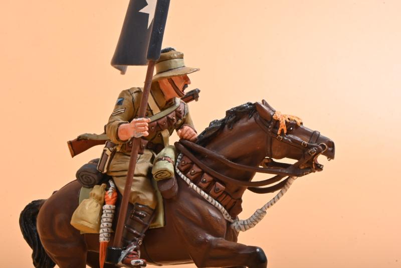 Lot 48 of 195: LIGHT HORSE: Two 1:30 scale King & Country's Light Horse all metal figurines. Australian Flag Bearer & Australian Light Horse Mounted Standard Bearer