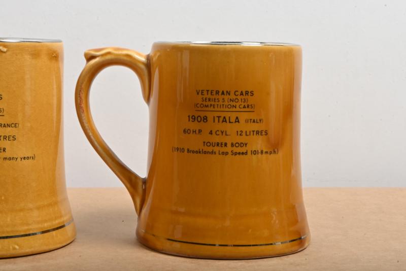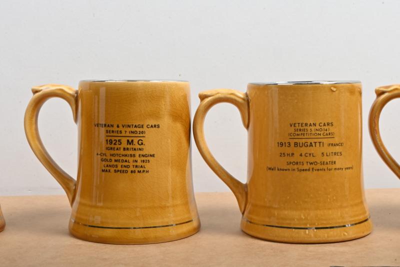 Lot 213 of 481: WADE VETERAN CAR SERIES: A group of five VETERAN CARS and VETERAN AND VINTAGE CARS SERIES (COMPETITION CARS), SERIES 5 and SERIES 6 mugs by WADE of England. Various mug depictions including 1924 ALFA ROMEO (NO.16), 1927 BUGATTI TYPE 35B (NO.17), 1925 MG (NO.20)