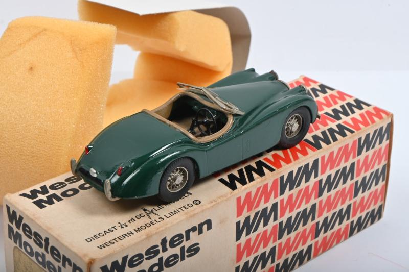 Lot 793 of 534: JAGUAR: Two Jaguar 1:43 scale models by Western Models. 1949 Jaguar Mk V Saloon in grey (WMS 41) & 1949 Jaguar XK120 Roadster (WMS 6) in British Racing Green