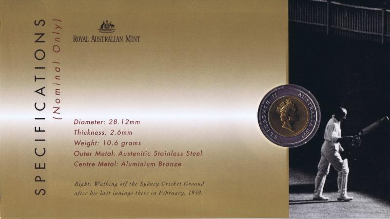 Lot 5 of 388: DON BRADMAN: A 1997 PNC Sir Don Bradman $5 coin and stamp cover first day of issue, autographed by Don Bradman