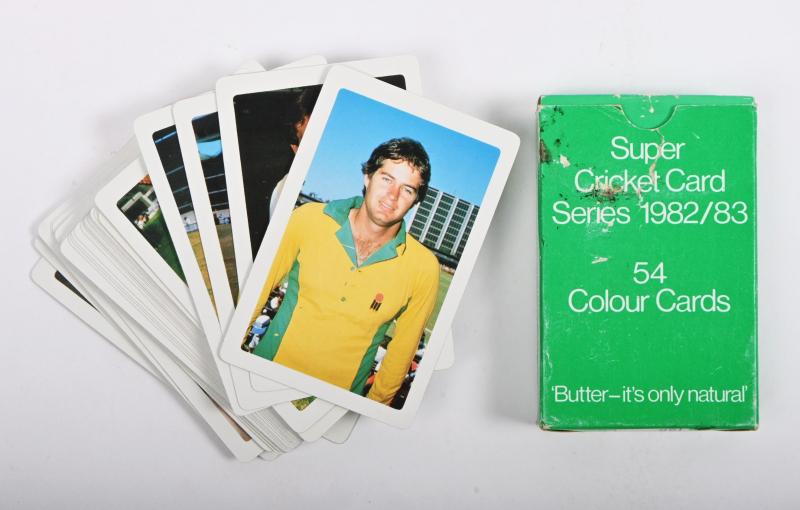 Lot 188 of 388: CRICKET CARDS: A box set of 'Super Cricket Card Series 1982/83' collectible cards, includes 54 cards, players such as Dennis Lillee, Allan Border, Greg Chappell and others