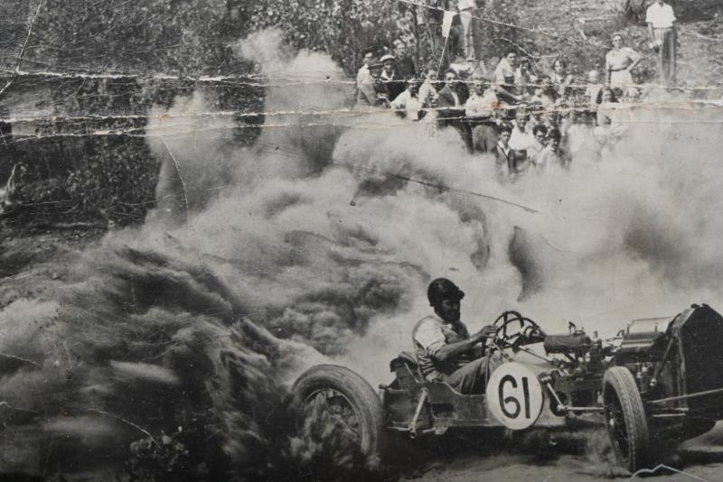 Lot 21 of 451: HURSTBRIDGE: An original black and white photo of R. Chandler in his Lancia Special at the Hurstbridge Hillclimb 30 January 1952, stamped to the back with The Argus mark, framed and glazed, folds and creases throughout, 24 x 29cm overall