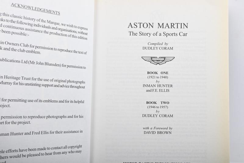 Lot 3 of 584: ASTON MARTIN: 'ASTON MARTIN - The Story of a Sports Car' hardcover book. Book One (1921 to 1940) and Book Two (1946 to 1957) compiled by Dudley Coram