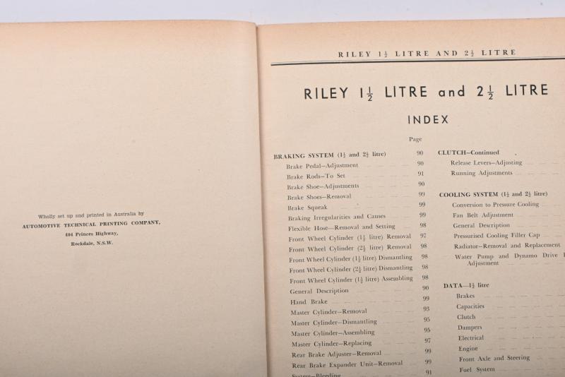 Lot 383 of 584: RILEY: A 1952 'RILEY 1.5 LITRE, 2.5 LITRE WORKSHOP MANUAL'