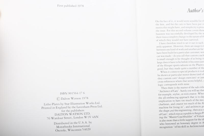 Lot 445 of 584: PININ FARINA: Two hardcover books by Michael Frostick detailing coachbuilding. First edition copy of 'Pinin Farina - Master Coachbuilder'