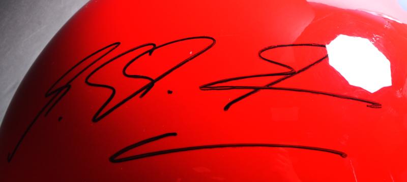 Lot B37 of 584: SCHUMACHER: A sparco 'PILOTA CORSO AVANZATO - Ferrari', open faced Kevlar Carbon helmet. Michael Schumacher signature