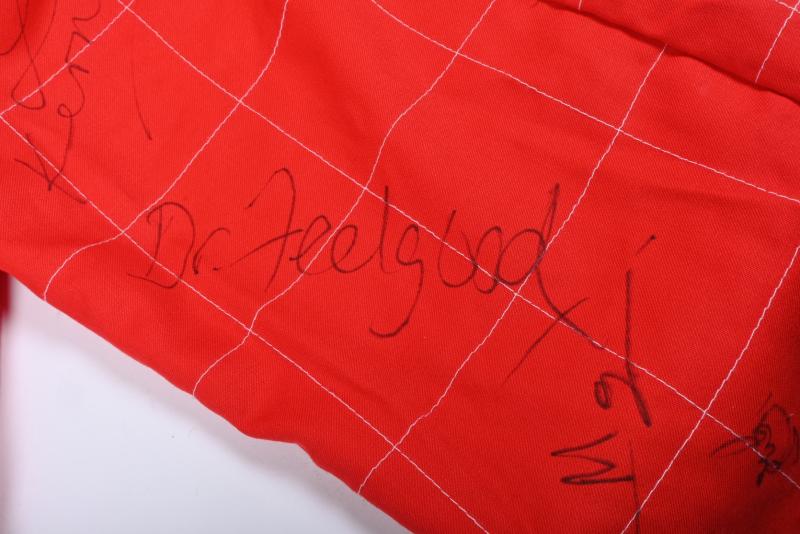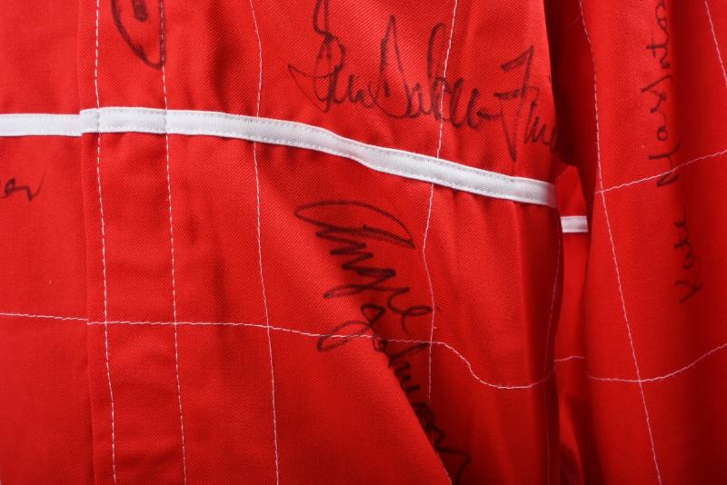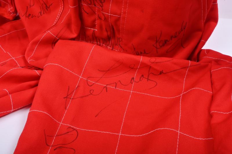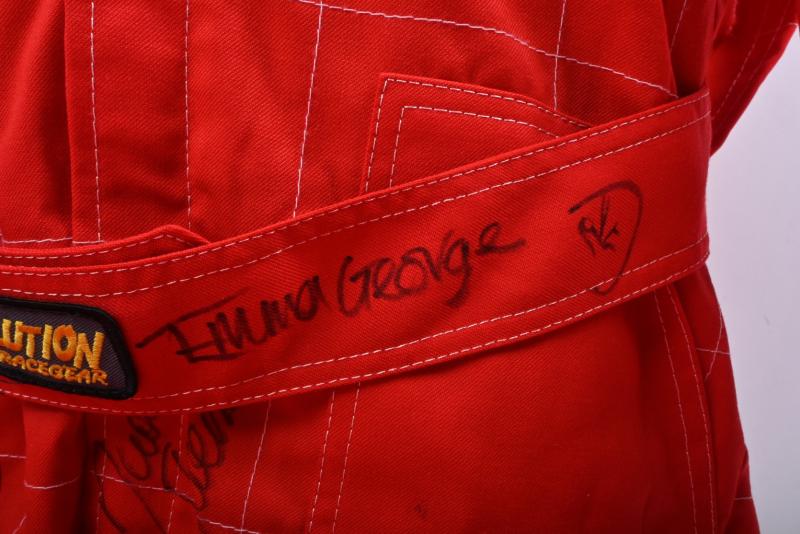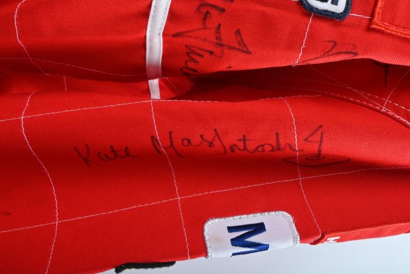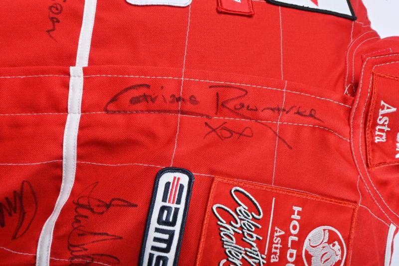 Lot A280 of 584: HOLDEN CELEBRITY CHALLENGE: A 1996 TRANSURBAN AUSTRALIAN GRAND PRIX, MELBOURNE, HOLDEN Astra Celebrity Challenge, RPM RACEGEAR red race suit. Suit autographed by numerous celebrities including Rachel Beck, Trevor Marmalade, Ben Mendelsohn, Catriona Rowntree, Nicole Stevenson