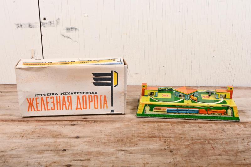 Lot 25 of 376: TIN TOY: An impressive small wind up tin toy train set made in the Soviet Union circa 1950s, 1960s by Aopota with original box